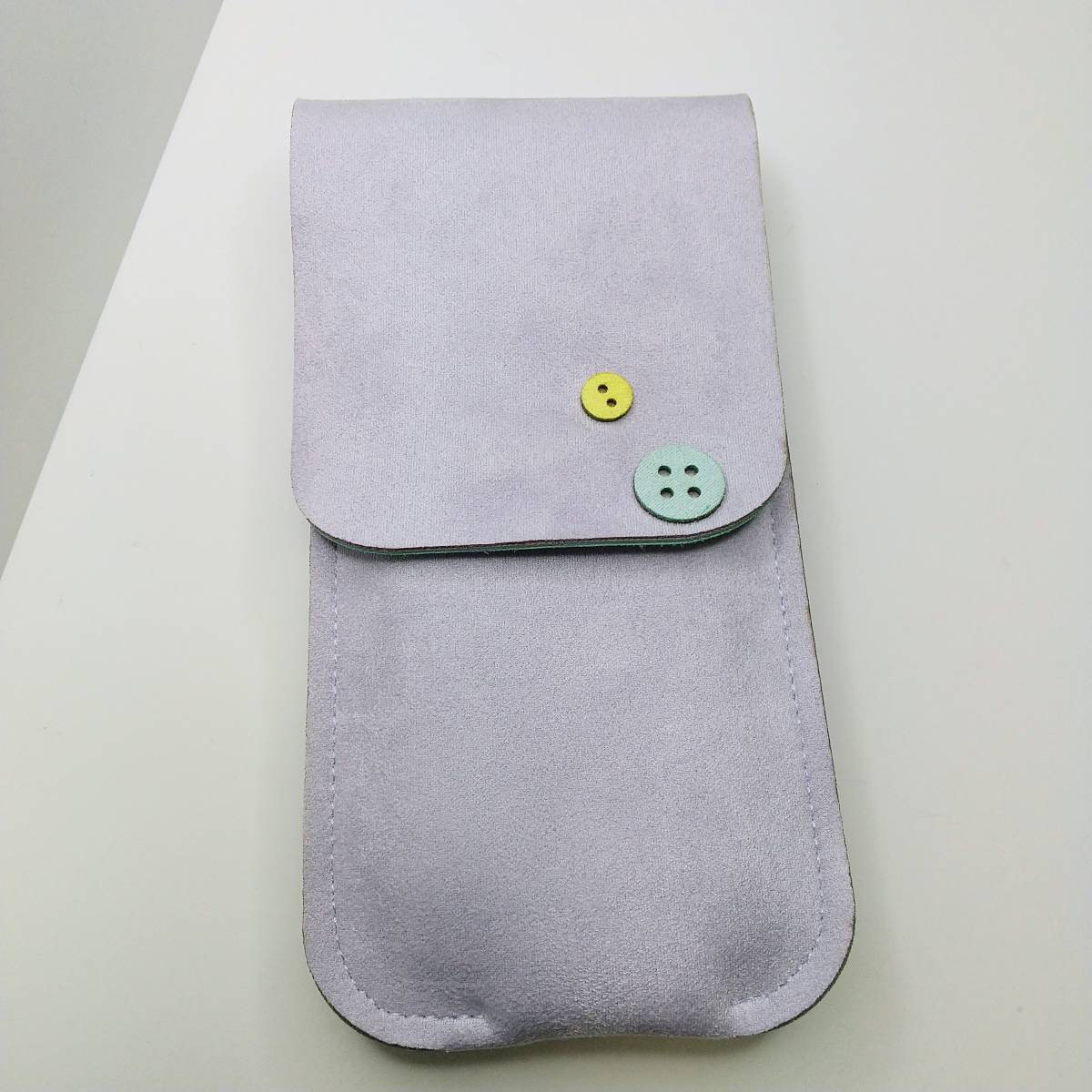 - ☆SALE☆未使用品☆パステルカラーマルチケース・縦型・パープル/ボタンモチーフ/マルチポーチ/小物入れ/ふでばこ