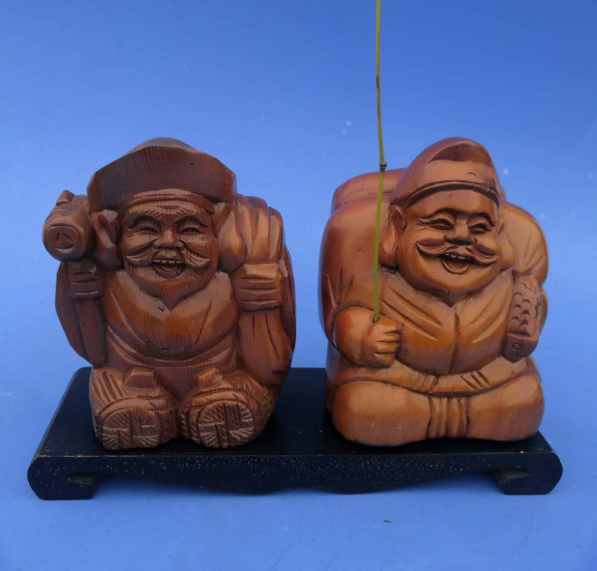 - 木彫り恵比寿大黒像セット木台付き高さ約24cm