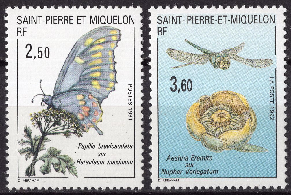 - ★1991-92年-サンピエール島とミクロン島 - 「蝶とトンボ 」2種完 未使用(MNH)(SC#554-555)★VG-676