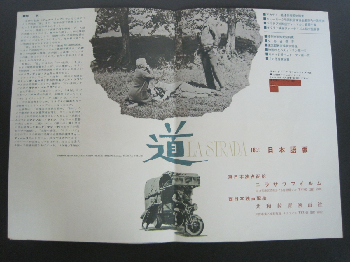 - 映画パンフレット 「道」 16mm 日本語版 出演:アンソニー・クイン ジュリエッタ・マシーナほか 送料無料