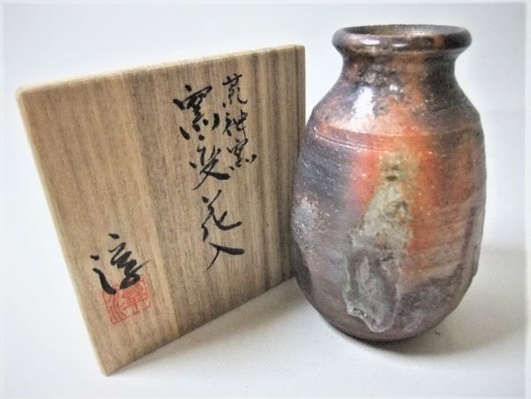 - 【睦】焼き締め 窯変花入 荒神窯「森川 淳」一輪挿し 共箱■