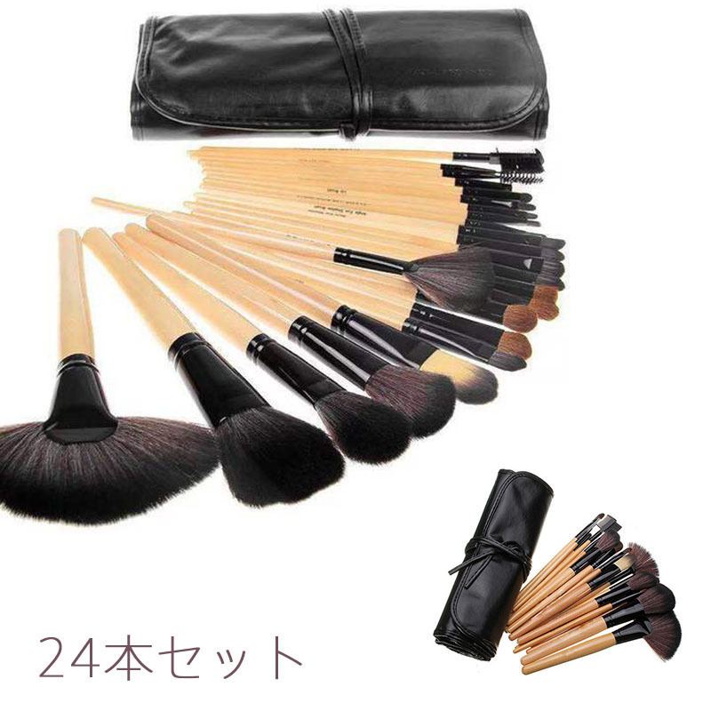 - メイクブラシセット コスメブラシ 化粧筆 基本メイクアップ道具 化粧ポーチ付け 24本セット