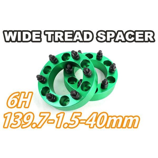 - ワイドトレッドスペーサー 2枚組 6H PCD139.7 M12-1.5 40mm 緑 ワイトレ