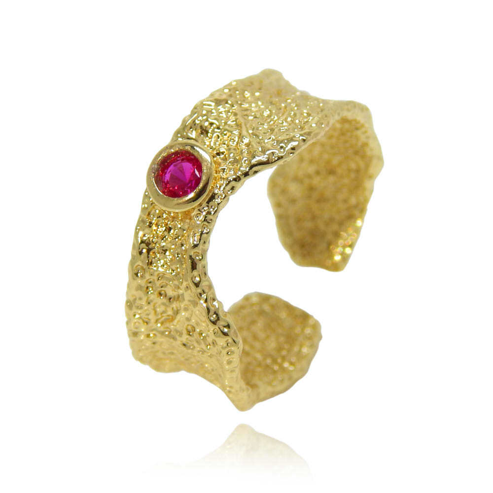 - 新品★送料無料 凸凹デザイン CZルビーダイヤモンドリング レディースアクセサリー フリーサイズ 指輪 ゴールド 極上の逸品 ジルコニア