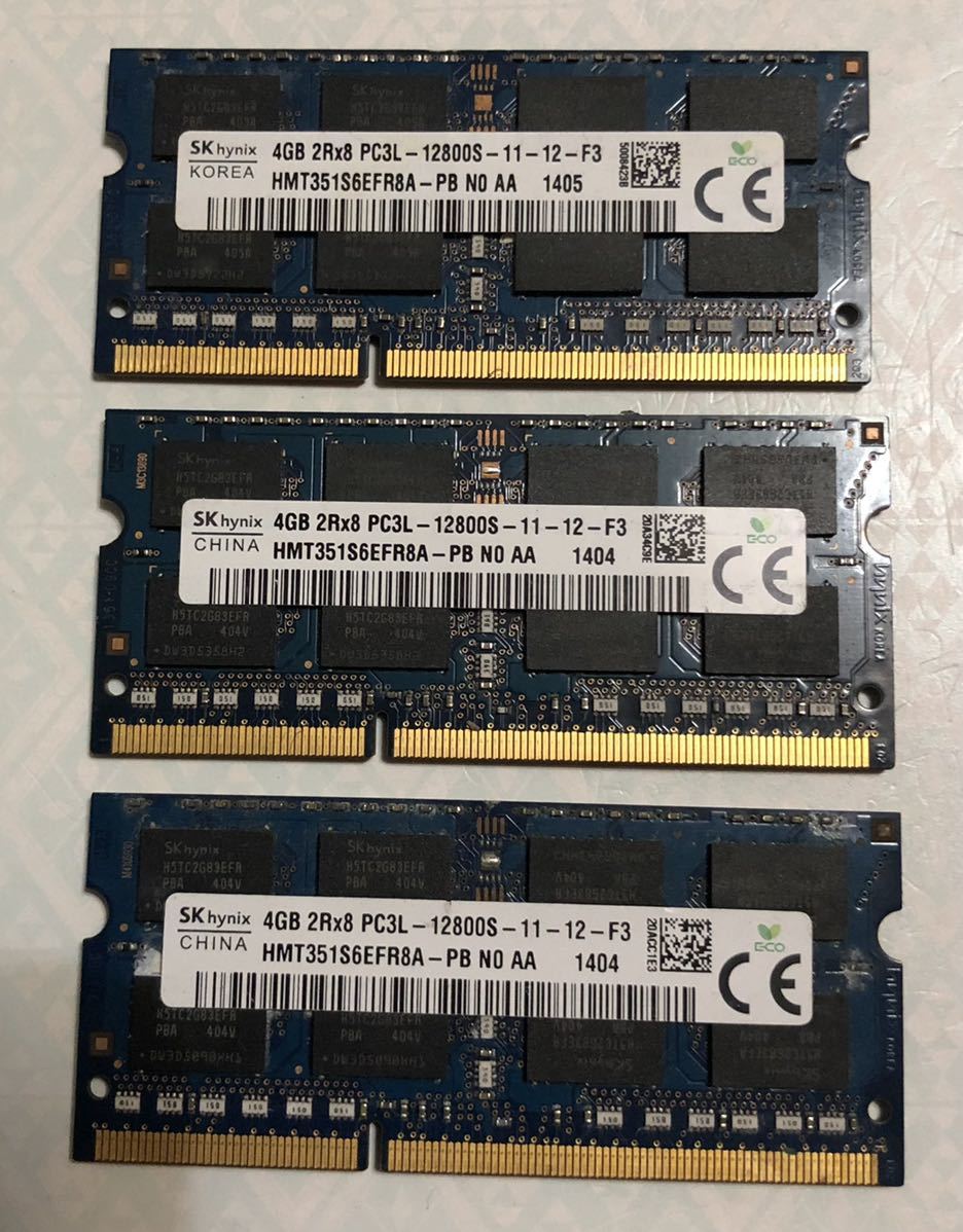 - SKhynix 4GB 2Rx8 PC3L-12800S-11-12-F3(3点セット)