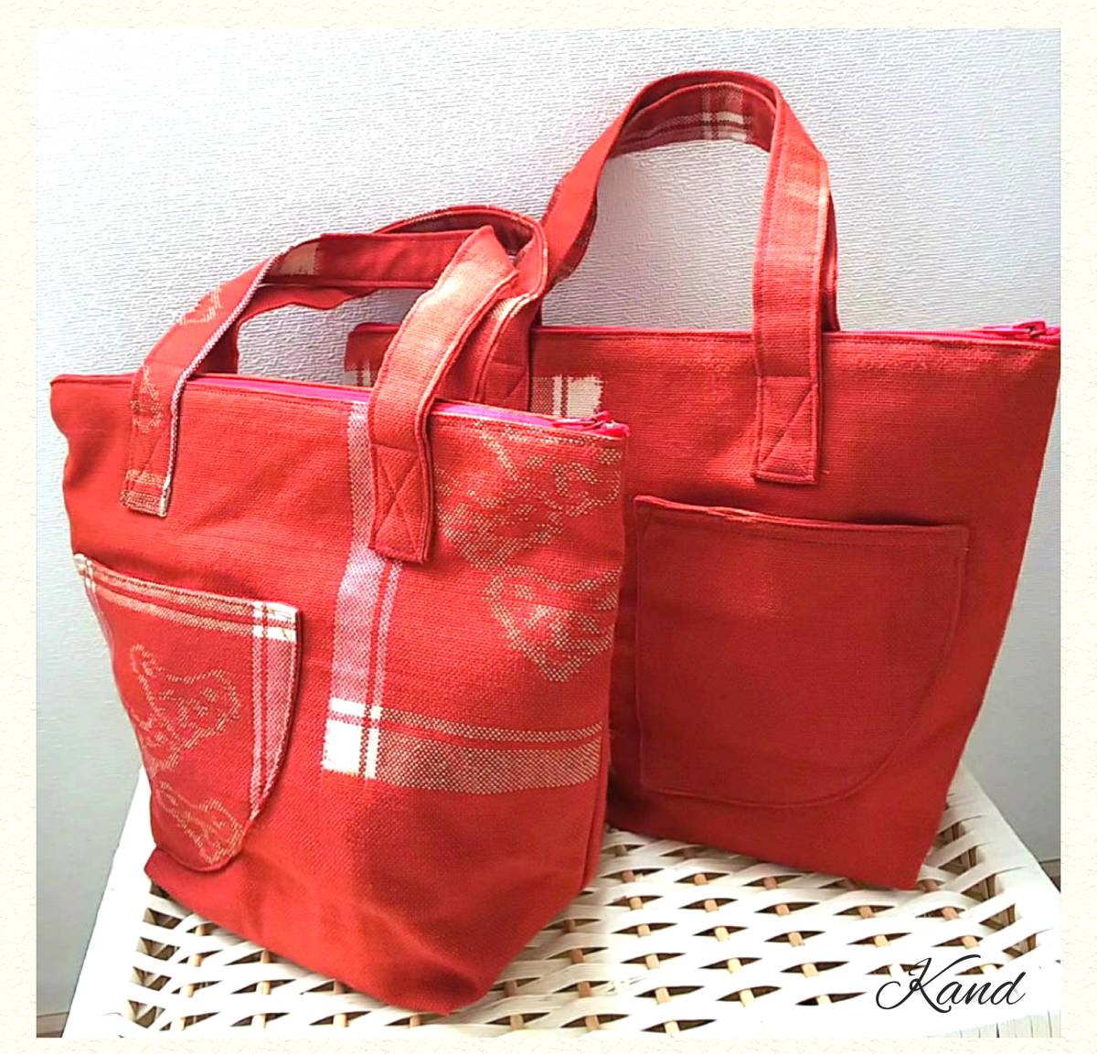 - 着物リメイク お揃い★バッグ ハンドメイド 2個セット★親子、お友達と