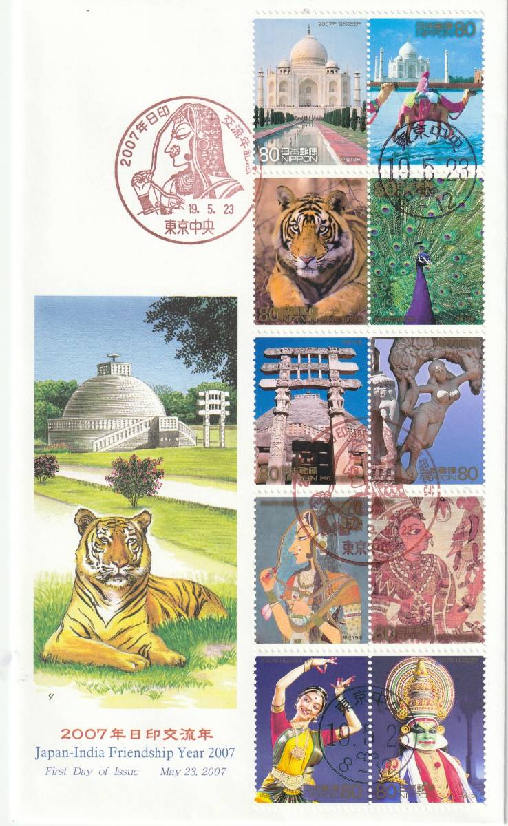 - FDC 2007年 2007年日印交流年 80円10貼 JPS