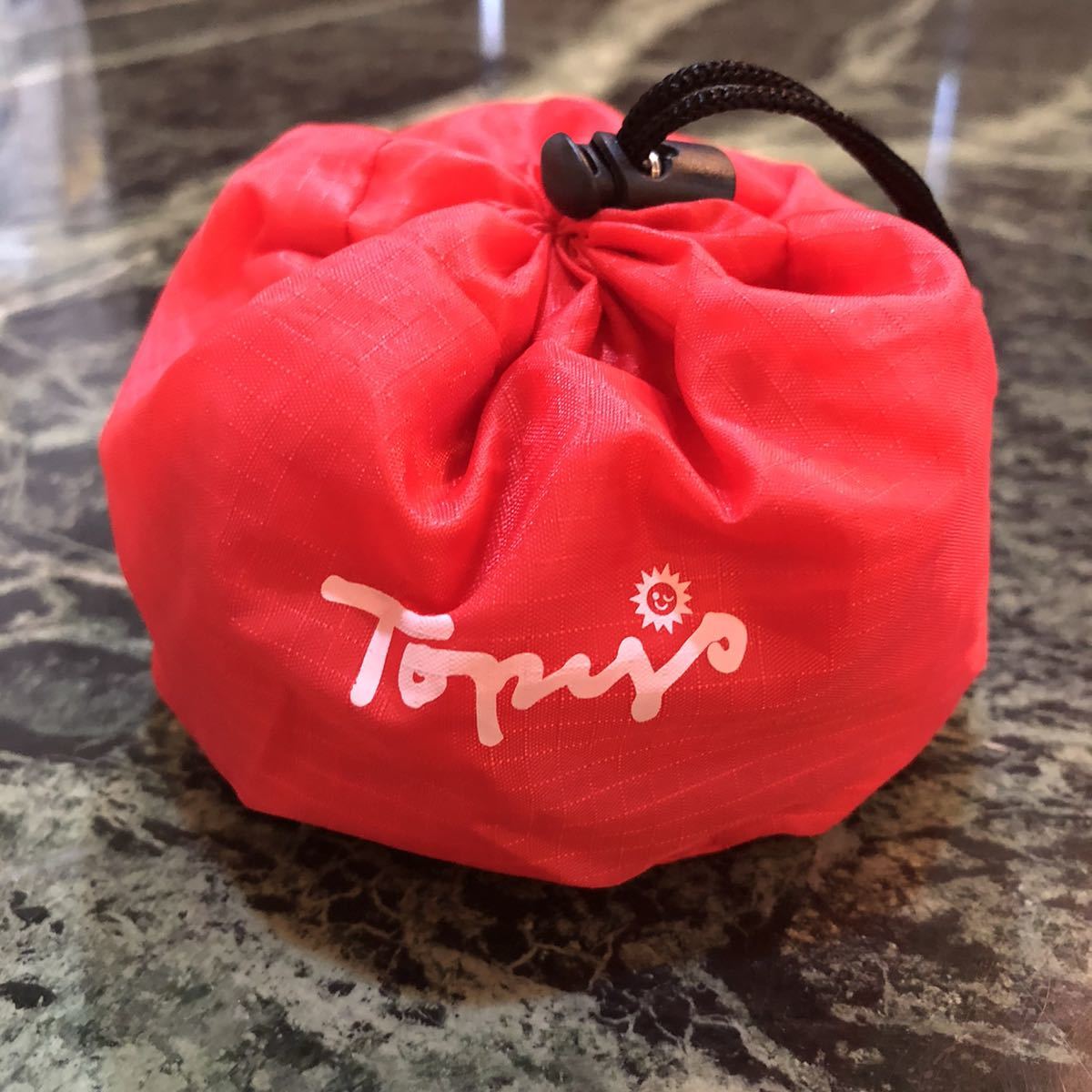- 【新品】Topys★トピィーズ コンパクトエコバッグ 巾着袋 折りたたみエコバッグ 赤 ノベルティ
