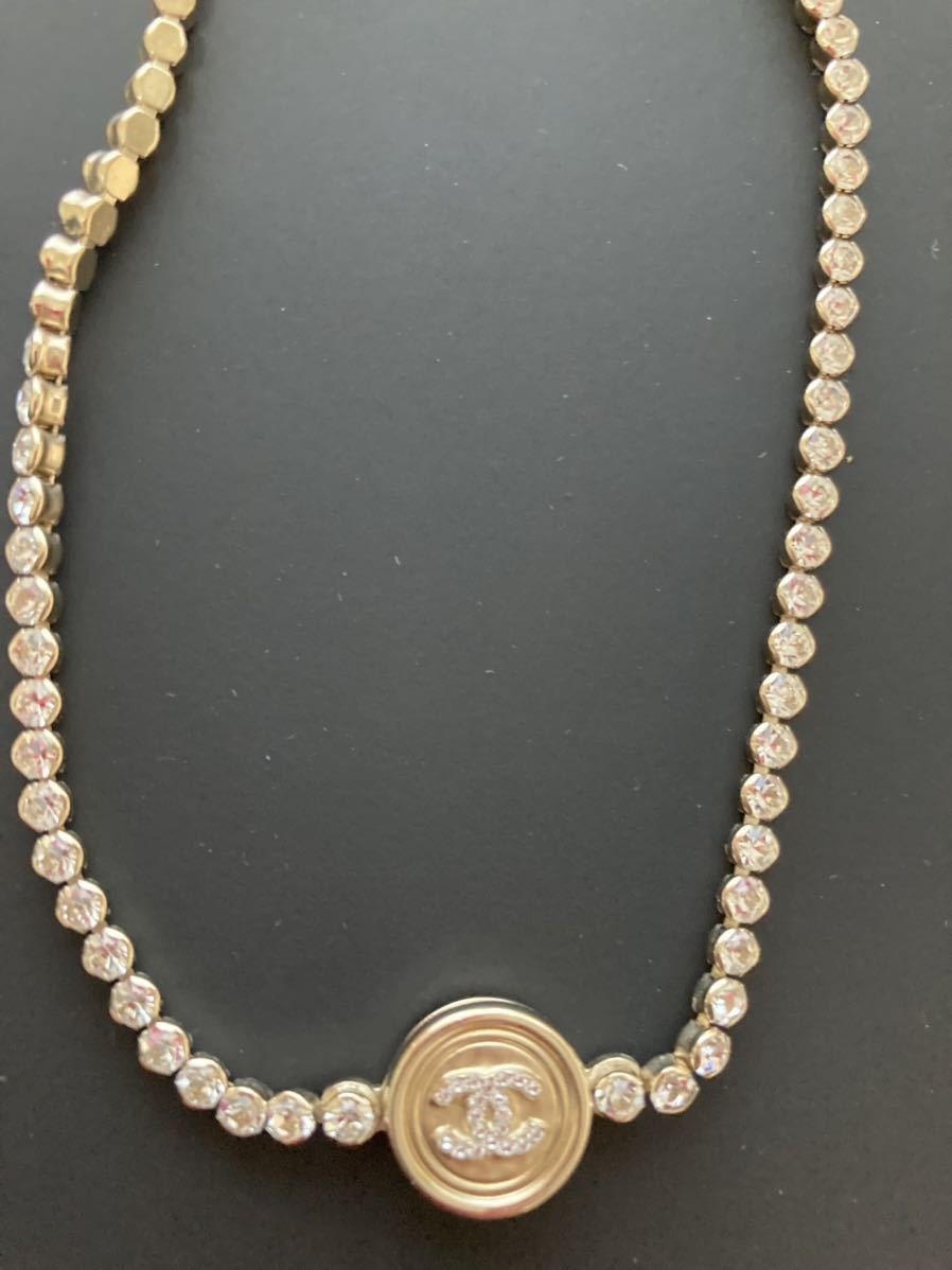 - 未使用 シャネル ネックレス チョーカー ゴールド×ストラス ラウンド ココマーク マトラッセ バッグ スカーフ 2ウェイ