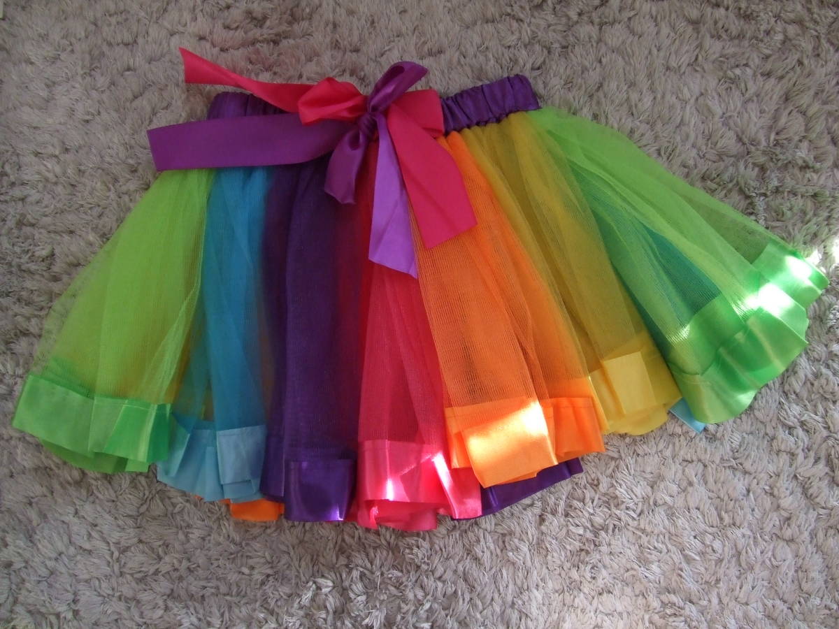 > キッズ衣装*カラフルチュチュスカート*Lサイズ*レッグカバー*レッグウォーマー*髪飾り*リボン*美品*ダンス衣装*フリルスカート*美品*
