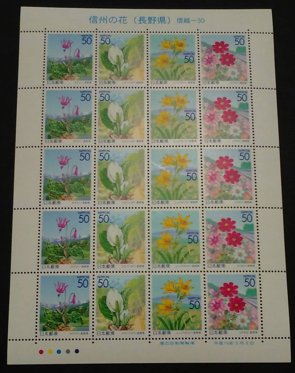 - 2003年・ふるさと切手-長野(4連刷)シート