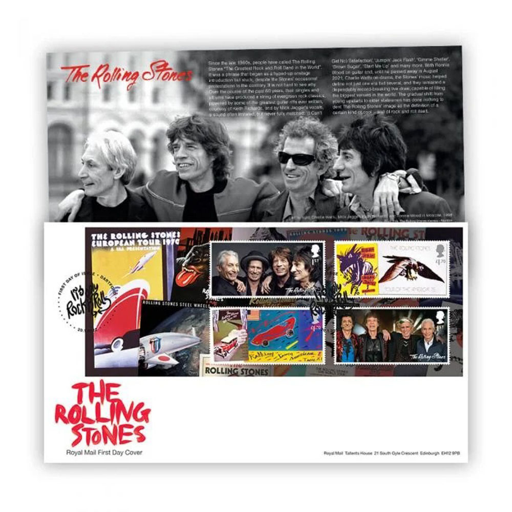 - ROLLING STONES ローリング・ストーンズ / 切手 4種 + 予約特典の封筒付き / Stamp Sheet Souvenir + Envelope /結成60周年記念/公式グッズ