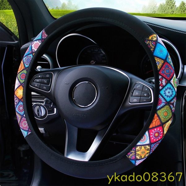 - P2194: 伸縮性のある車のステアリングホイールカバー エスニックスタイルのプリント 滑り止め カーアクセサリー 38cm