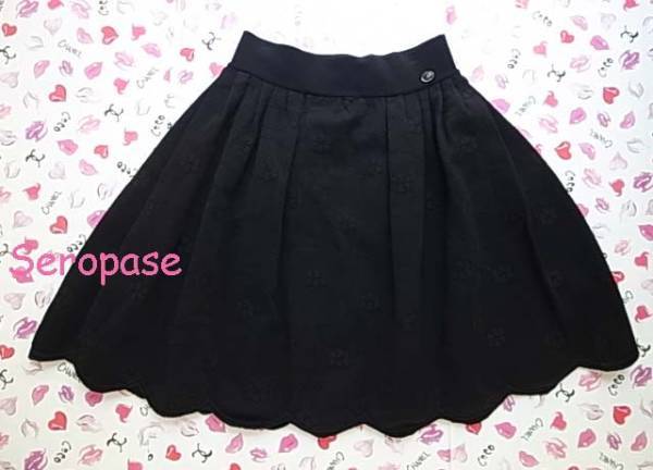 - ★13Cシャネル CHANEL お花柄の可愛らしい スカート 黒 38