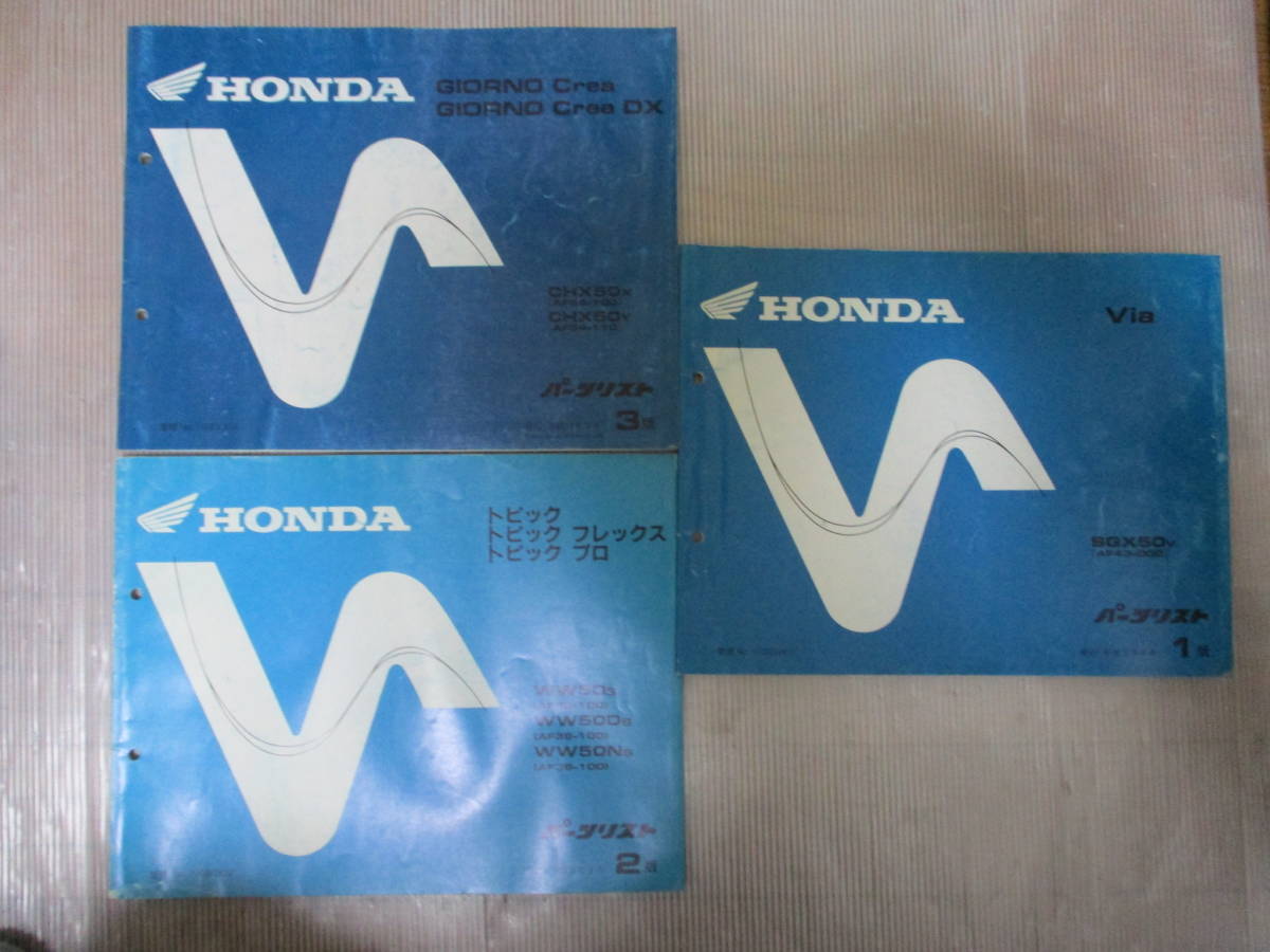 - 11] ホンダ ジョルノクレア/DX AF54トピック/フレックス/プロ AF38 VIA ビア AF43 パーツリスト 3冊セット