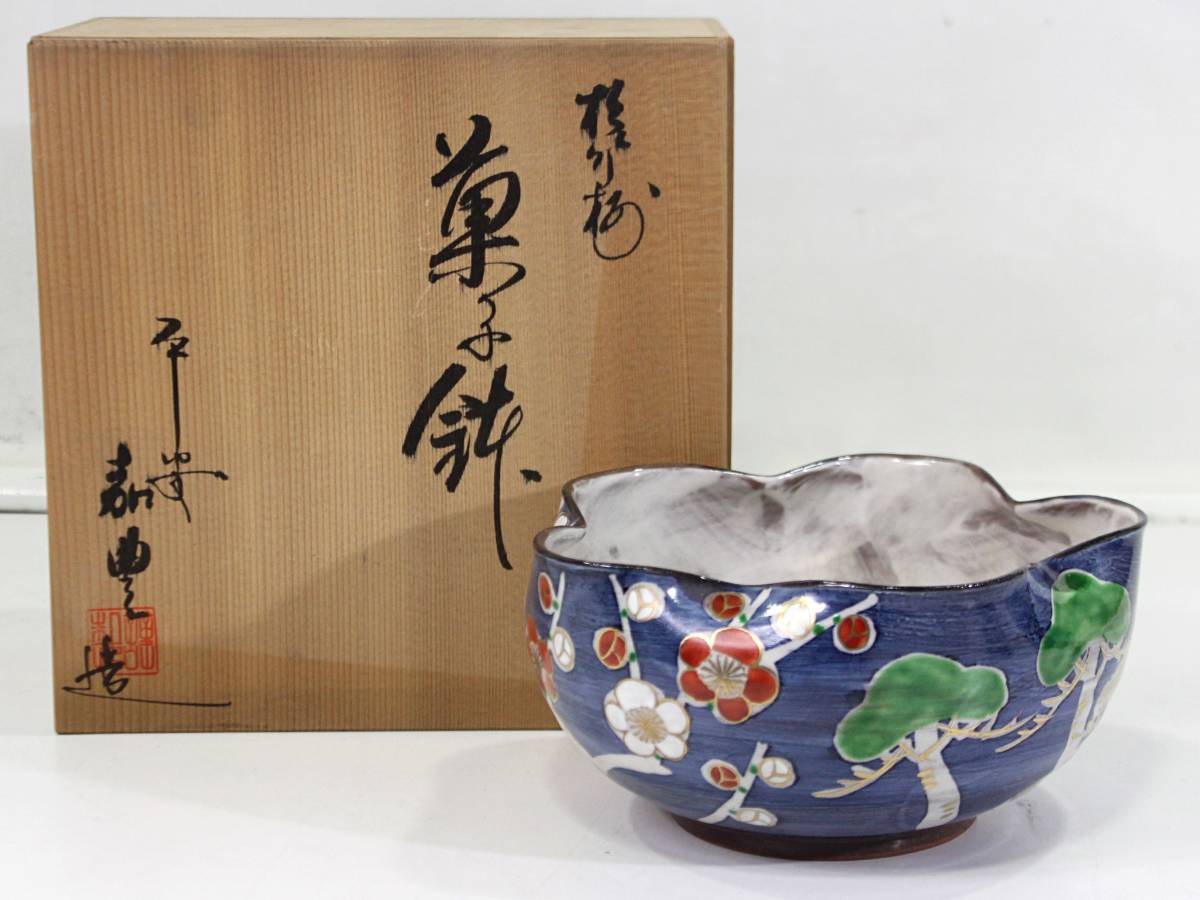 - ★平安 嘉豊窯★松竹梅 菓子鉢 清水焼 深鉢 共箱★菓子器 金彩 梅型