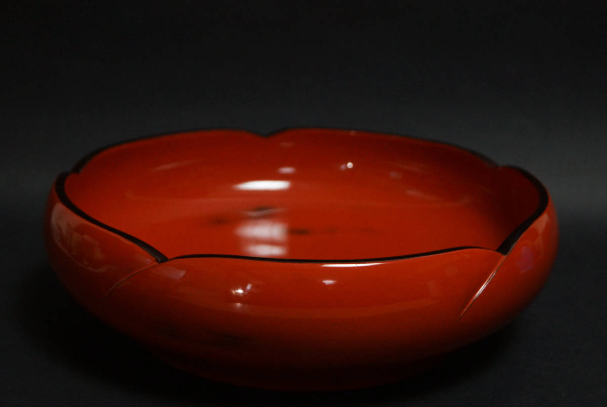 - 【閑】茶道具 根来塗 捻梅型大型木製鉢 径30.5㎝ 茶事/茶道具 4D0225■