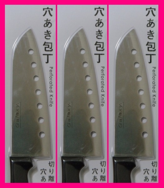 > 【送料無料:包丁3点:27.4cm】★穴あき包丁x3★スムースに切れる:調理器具 新品 未使用★3個 3丁