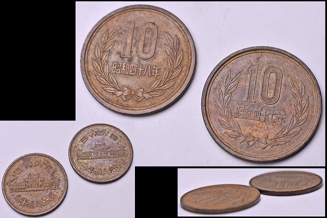 > 10円 ★ 昭和 47年 48年 ★ 硬貨 ★ 10円硬貨 ★ 銅貨 ★ 青銅貨 ★ 2枚セット ★ 傷み・汚れあります