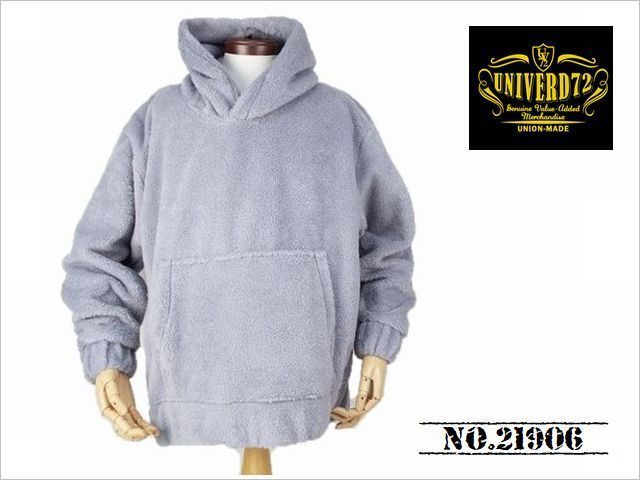 > 【送料無料 42%OFF】UNIVERD72 ユニバード72 ボアフリース素材 ワイドシュルエットPULLパーカー NO.21906-SP GRAY_Lサイズ