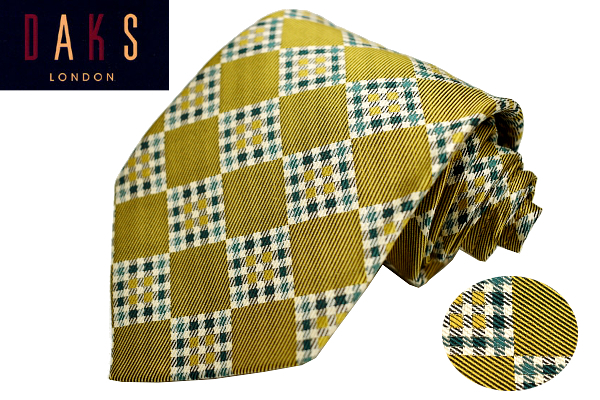 > N-2282★送料無料★超美品★DAKS LONDON ダックス ロンドン★正規品 ゴールド 金色 チェック 豪華な織り生地 絹 シルクネクタイ