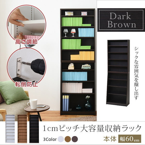 - 送料無料 1cmピッチ大容量収納ラック YHK-0214 横幅60cm 高さ180cm DB ダークブラウン