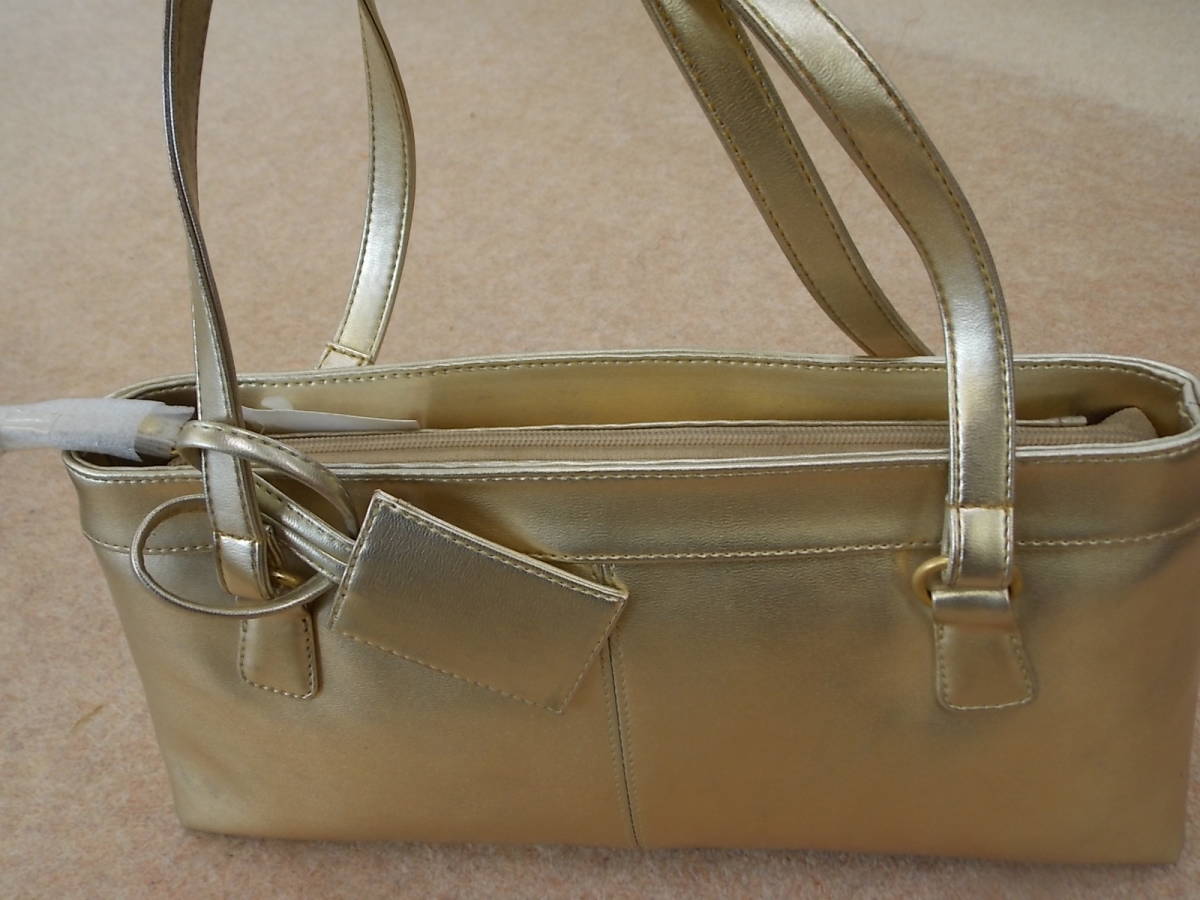 - きもの今昔3403 夏の100円バーゲン ハンドバック 合皮と判定 金色 中央チャック付き