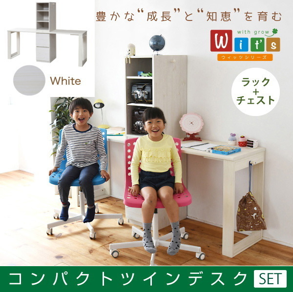 - 送料無料 子供用 ツインデスク FWD-0002SET 幅90cm デスク+ラック+チェスト WH ホワイト