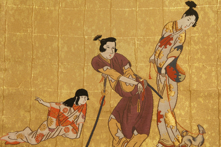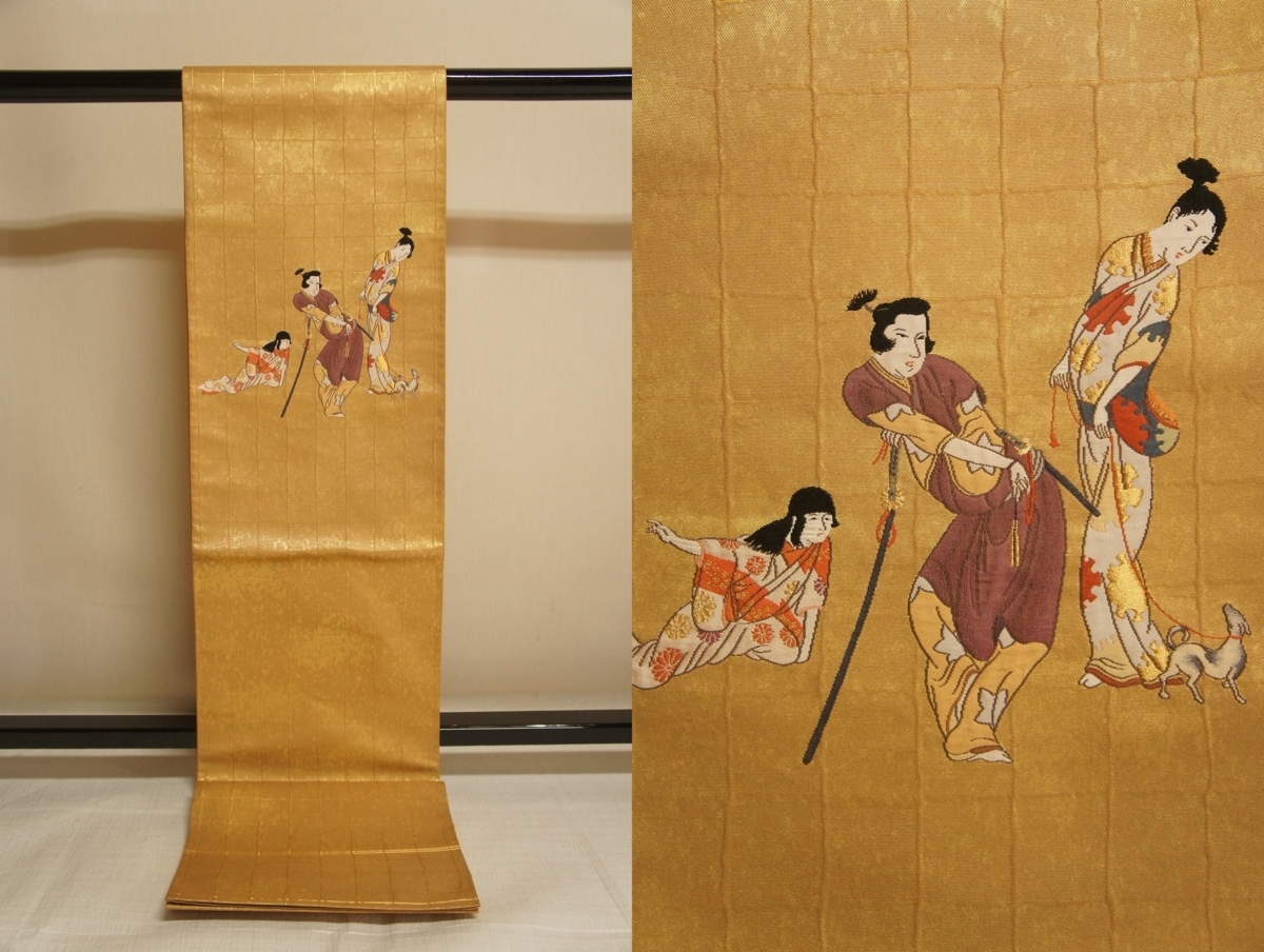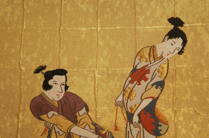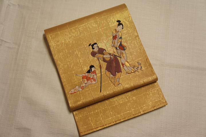 > 特選紫紘本金箔地箔目彦根屏風絵模様袋帯[O11012]