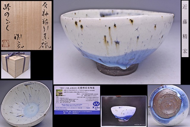 - 近藤精宏 ★ 灰釉 粉引 茶碗 ★ 共箱 栞 個展DM ★ 銘:峰のしずく ★ 師:小山冨士夫( 古山子 )★ 釉景が素晴らしい逸品 ★ 茶道具