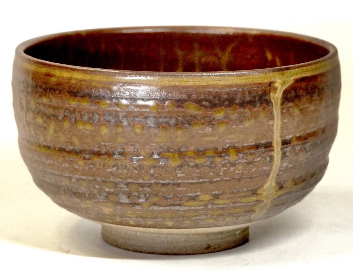 > 昭和ビンテージ 茶道具 抹茶茶碗 銘:秀山 垂釉の表情が素晴らしい! 侘び寂び、趣き深い一品 直径12㎝ 高さ7㎝ OSO