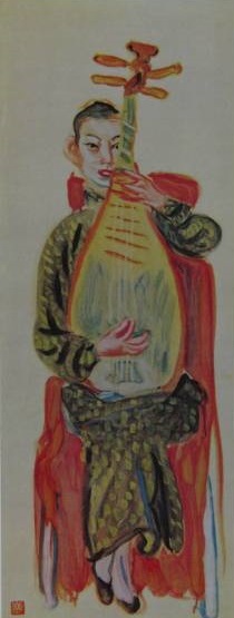 - 梅原龍三郎、【弾琵琶図】、希少な大判額装用画集より、美品、日本人画家、新品額装付、送料込み