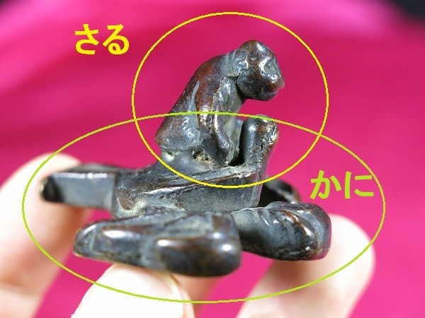 - B さる・かに糸印 印章 江戸時代 古銅 金工 孫悟空 猿蟹合戦 明清時代 文鎮 書鎮