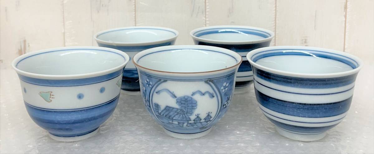 > 伝統工芸 工芸品 工芸美術 金属工芸 *三崎窯 陶器 陶芸 鳥 縞 風景 景色 文 *湯呑 湯呑み ゆのみ 5点 5客 茶器 煎茶器 緑茶 日本