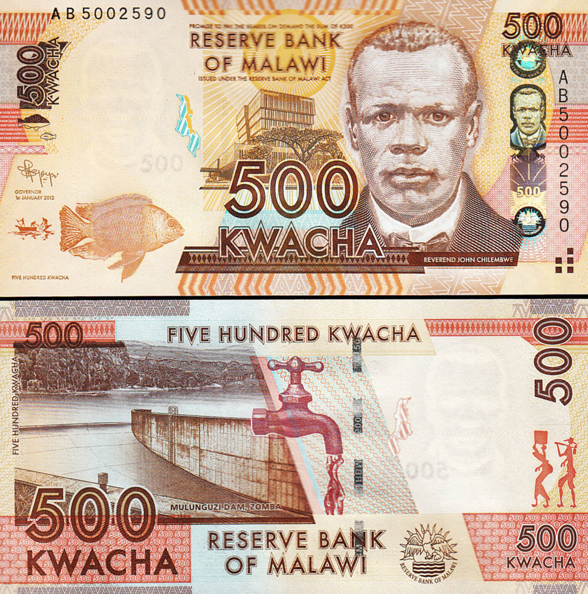 - (B-982) マラウィ 500クワチャ紙幣 2012年