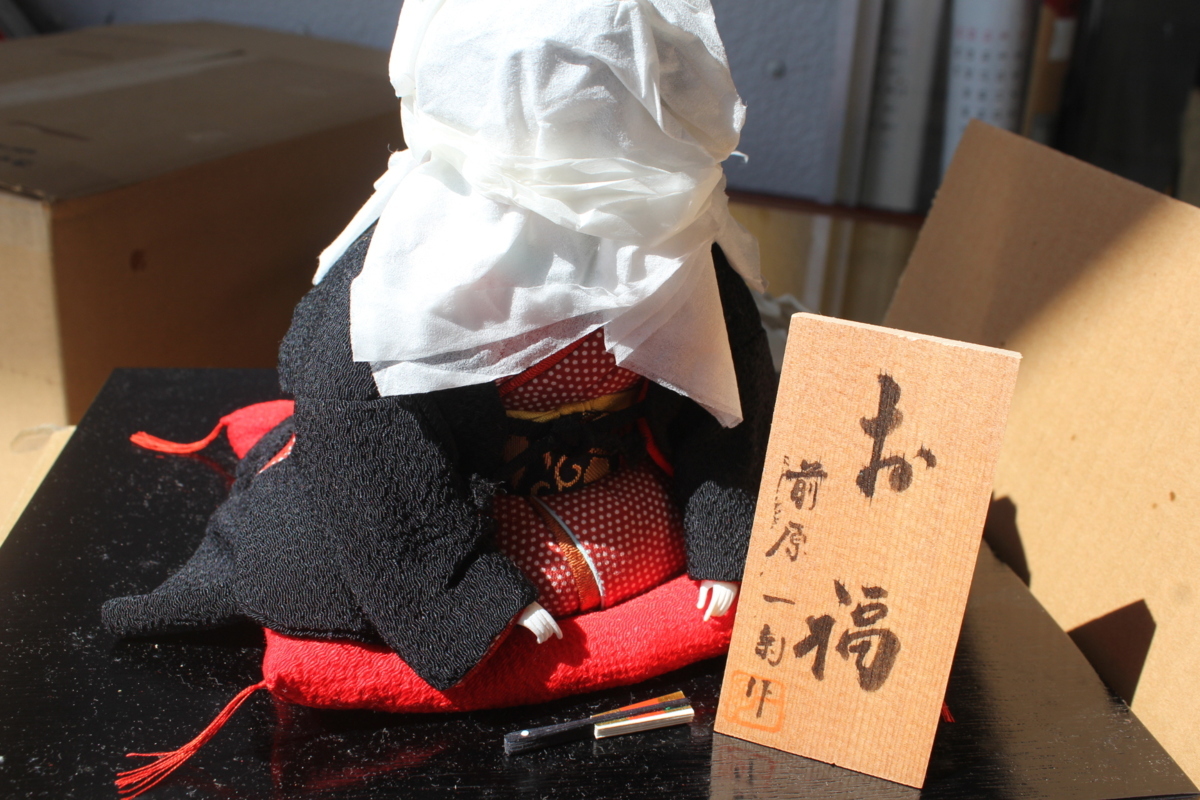 - 新品 前原一菊作 お福人形 黒羽織姿 商売繁盛 縁起物