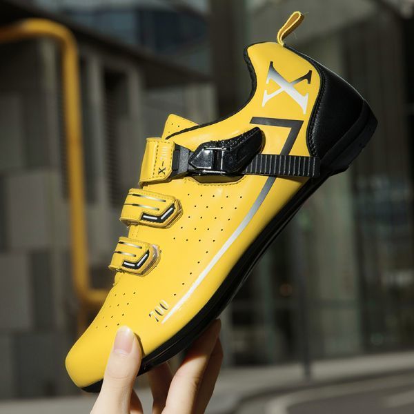 > 2021 ビンディングシューズ サイクリングシューズ スニーカー 自転車 シューズ スポーツ バイク 男女可 X700 黄 25.5cm/41