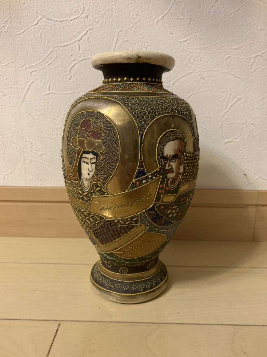 - ★古家出★レア★薩摩 色絵金彩人物文 花瓶 花器 花入
