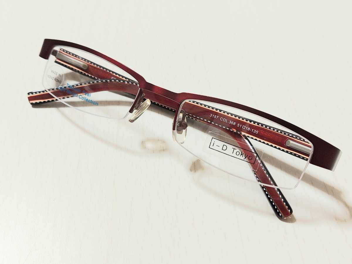 - 新品 i-D Tokyo メガネ 眼鏡 高級感 オシャレ 上品 ハーフリム チタン COL.368 バネ蝶番 赤