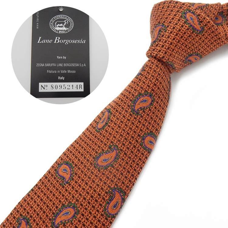 - ウールネクタイ 伊ゼニアバルファ社 キャッシュウール 赤橙系/ペイズリー柄 日本縫製 Gentil uomo zeg113