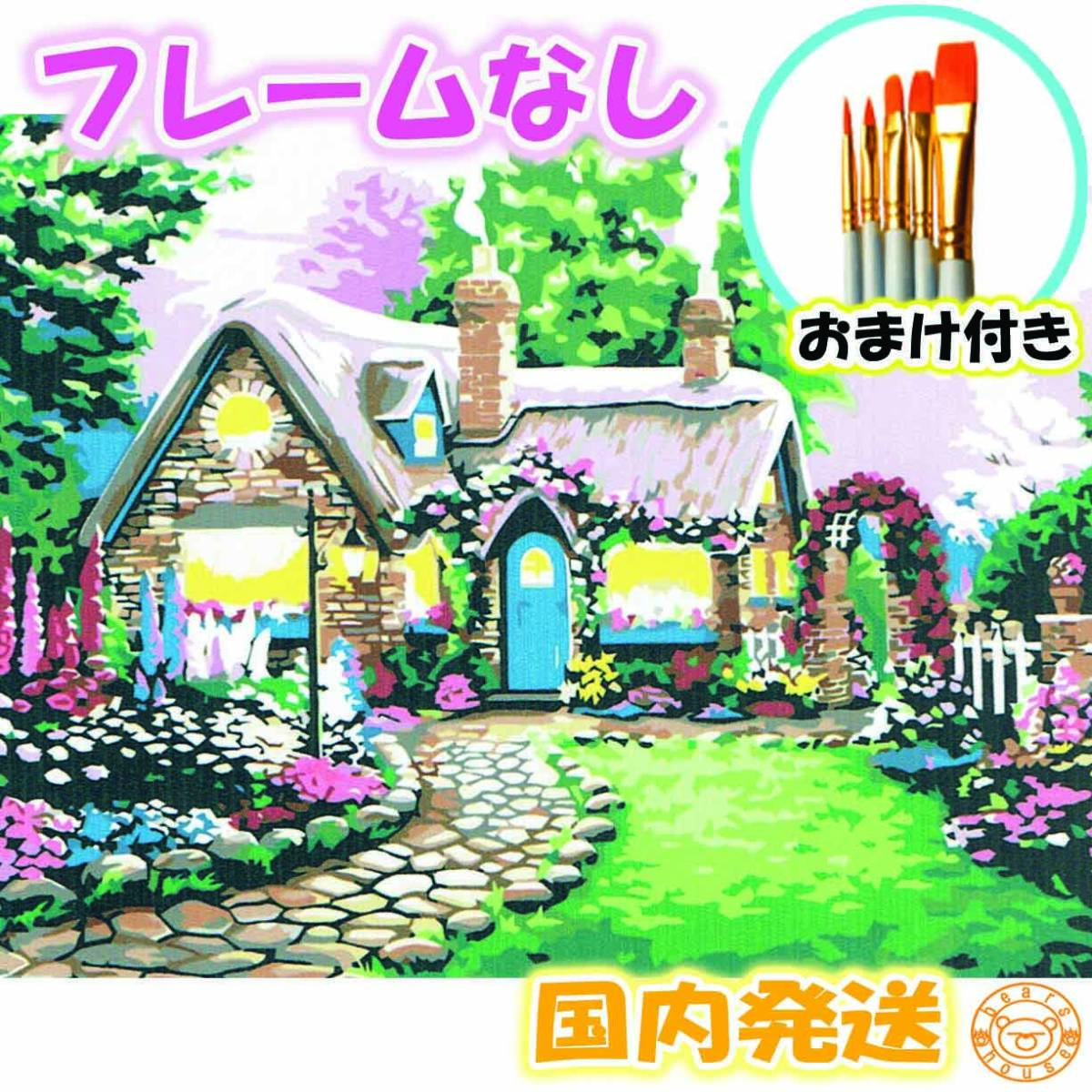> ☆おまけ付き☆【フレームなし】 数字ぬり絵 セット 大人の塗り絵 絵の具付き 家 ハウス 可愛い 自然 インテリア 絵画 油絵風 6031