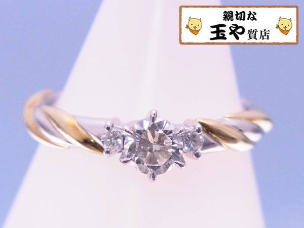 - 新品同様 ダイヤ0.37 0.07ct プラチナ K18 リング 10.5号