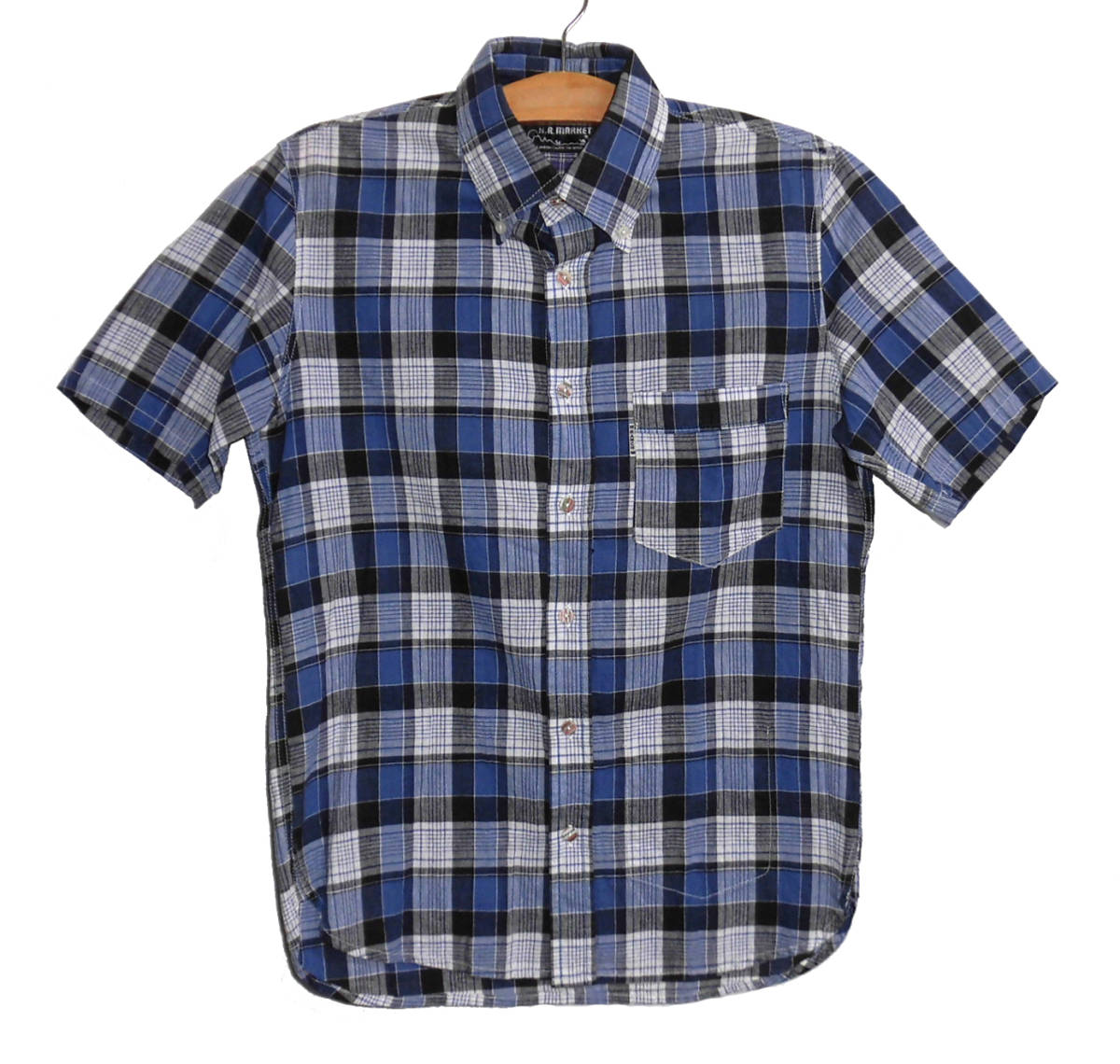 - 美品 HRM ハリウッドランチマーケット コットン チェック ボタンダウン シャツ 2 (M) ハリラン HOLLYWOOD RANCH MARKET