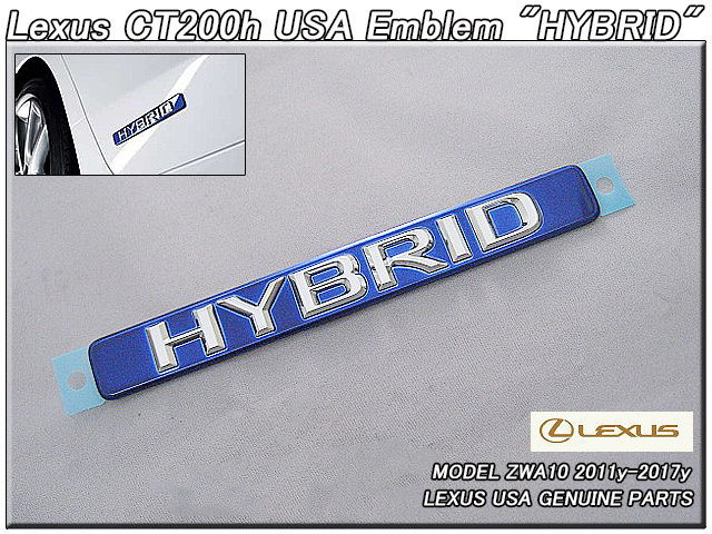 > レクサスCT200h/LEXUS/ZWA10純正USエンブレム-サイドHYBRIDマーク青色/USDM北米仕様ハイブリッド米国ブルー色プレートタイプUSA青バッジ