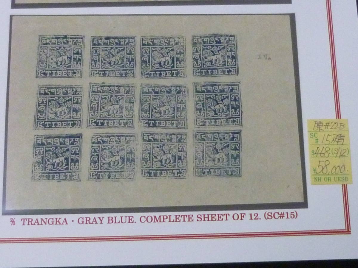 - 22SE A №28 チベット切手 1934年 SC#15 第三版普通 2/3T 淡青 12面シート 未使用NH・VF ※説明欄必読