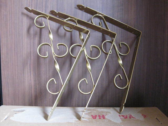 - <昭和レトロ棚受けゴールド金具3本アンティークUSEDリペイント>