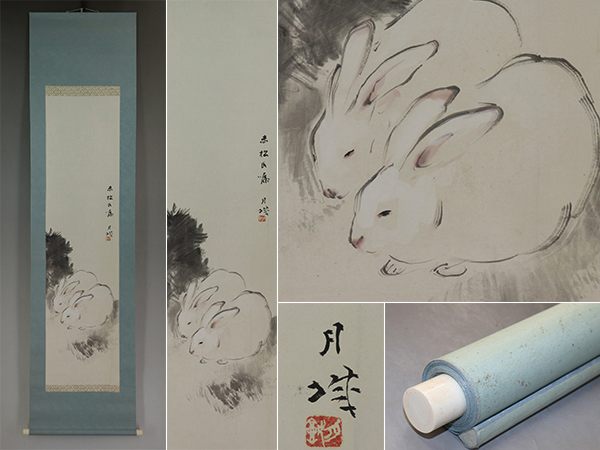 - 【真作】森月城【卯図】◆紙本◆共箱◆掛軸 u04047