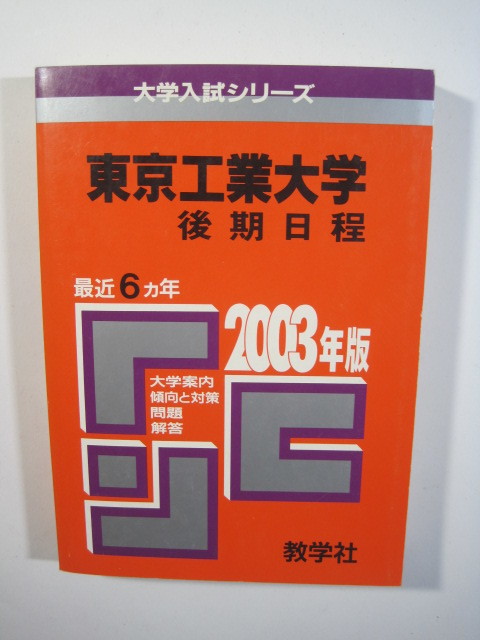> 赤本 教学社 東京工業大学 2003 6年分掲載 後期日程 後期 (掲載科目 英語 数学 理科 小論文 )東工大