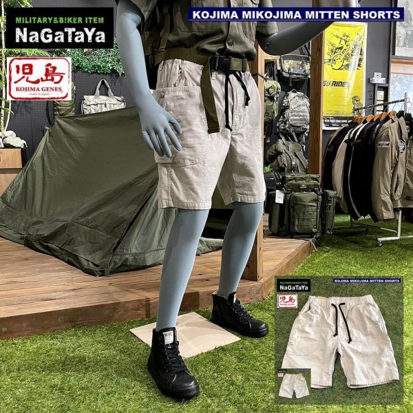 - 児島ジーンズ KOJIMA GENES ミトン ショートパンツ 34インチ ウエスト85cm~89cm ビッグ ポケット グレー MADE IN JAPAN 日本製