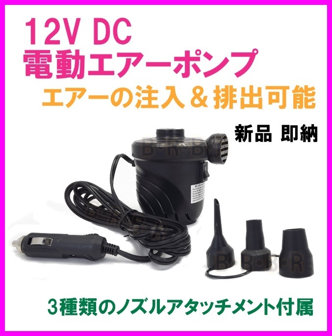 > 12V DC 電動エアーポンプ 3種類のノズル付 エアーの注入&排出可能 空気入れ!新品♪浮き輪 ウォータートイ プール エアクッション に便利